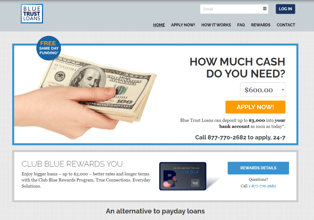 Blue Trust states that it is a better alternative to a traditional payday loan.