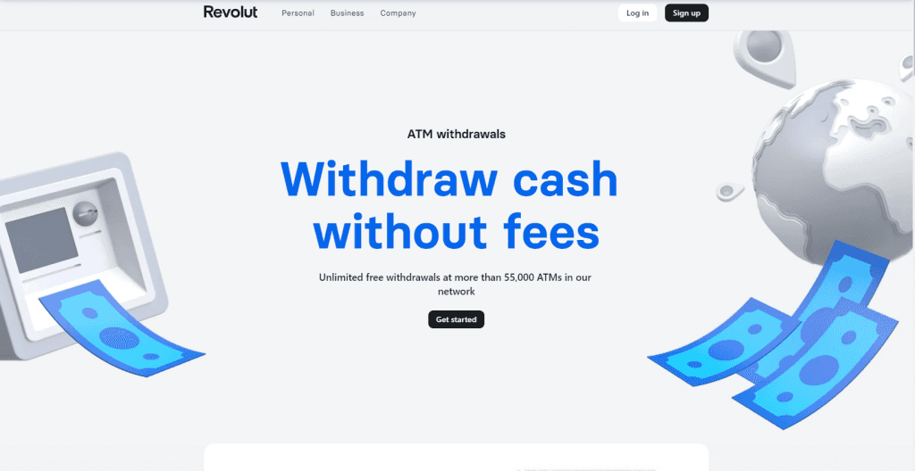 With Revolut, you can withdraw cash without fees at their ATM network. Users can benefit from unlimited free ATM withdrawals at more than 55,000 locations worldwide.