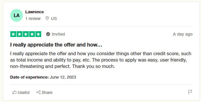 Upstart gets 4.9 out of 5 stars on Trustpilot, with users generally giving positive feedback: