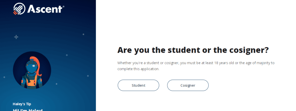 | Requirements: | U.S. citizen, permanent resident, DACA studentCo-signer required for international studentsAge of majority in your state of residenceEnrolled in an Ascent-approved school |