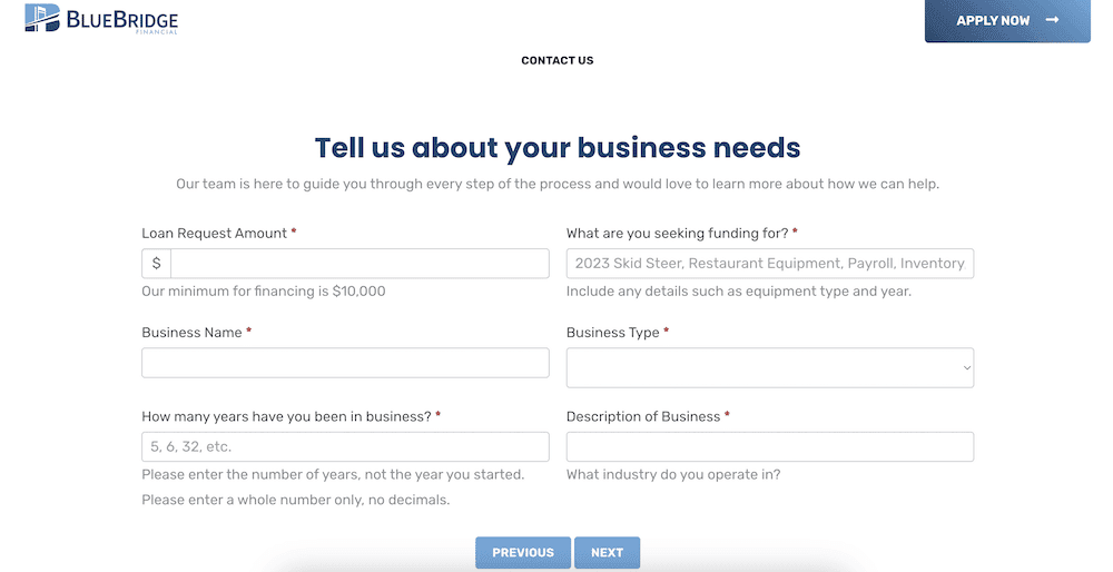 The initial application process is quick, with Blue Bridge Financial typically reviewing applications within 4 business hours. If approved, funding can be available as soon as the same day after approval, making it one of the faster options in the equipment financing market.